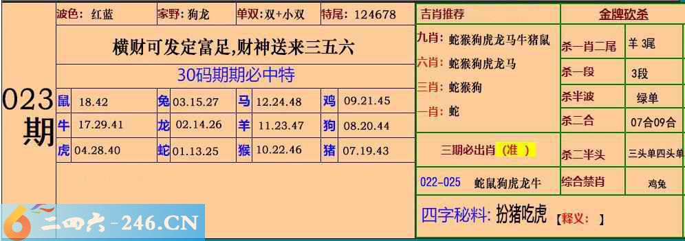 023期:30码期期必中特