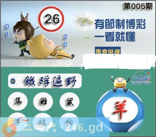 2026年005期正版彩图挂:26 爆:羊 挂牌成语:饿殍遍野 挂牌出肖:马鸡鼠牛龙狗