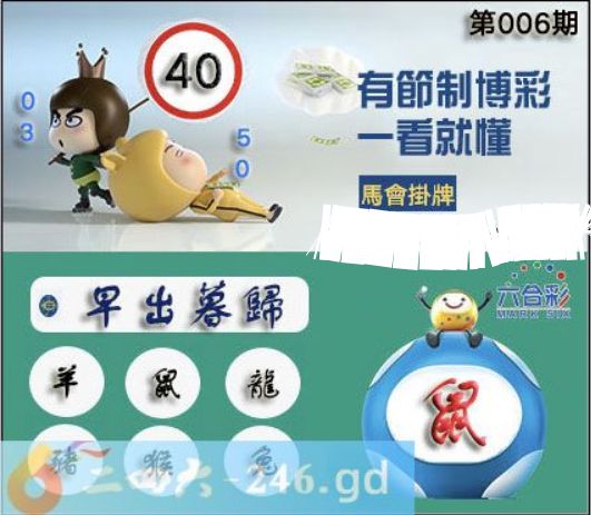 2025006期006期正版彩图挂:40 爆:鼠 挂牌成语:早出暮归 挂牌出肖:羊鼠龙猪猴兔