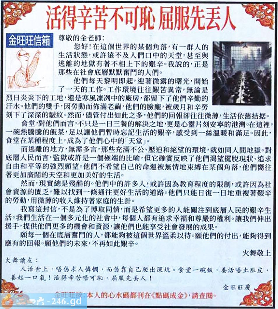 010期:金旺旺信箱彩民推荐→→《活得辛苦不可恥 屈服先丟人》