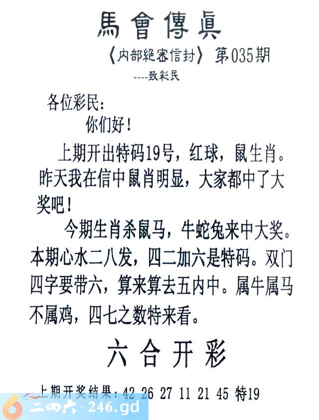 035期:首发推荐:≮馬會傳眞≯→(香港正版)