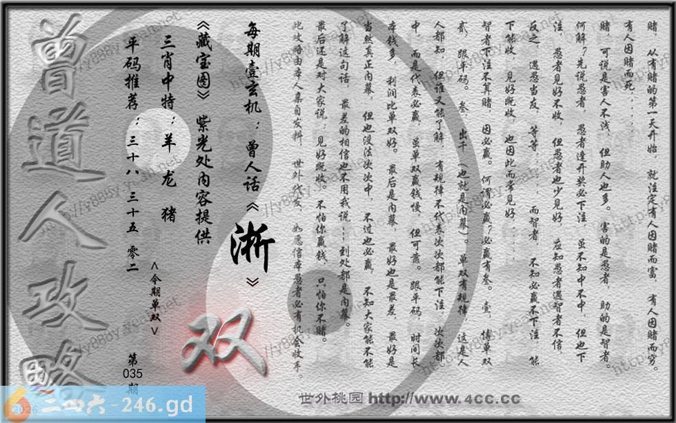 035期藏寶圖 新:蕉留庭户因供字 老:日长暗记残香篆 禁:蛇 禁:8尾 玄機字:《渐》